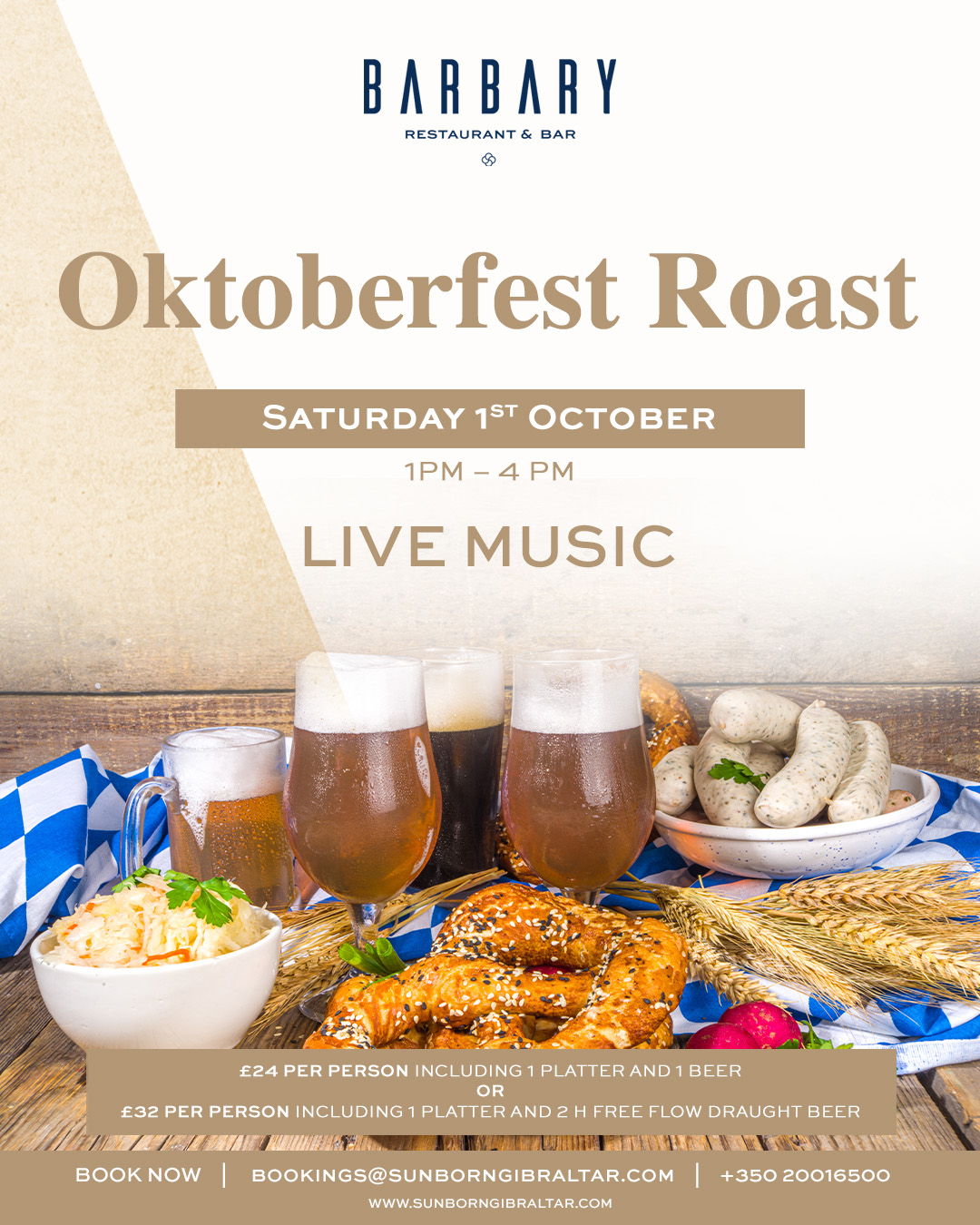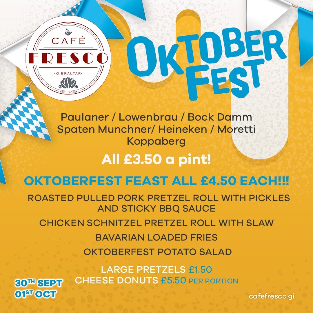 Live music at our venues, traditional Bavarian costumes, special German beers and German-inspired foods available. Follow @oceanvillagegibraltar on Facebook for more info to be released. Click the above images to find out what’s going on at Ocean Village for Oktoberfest!