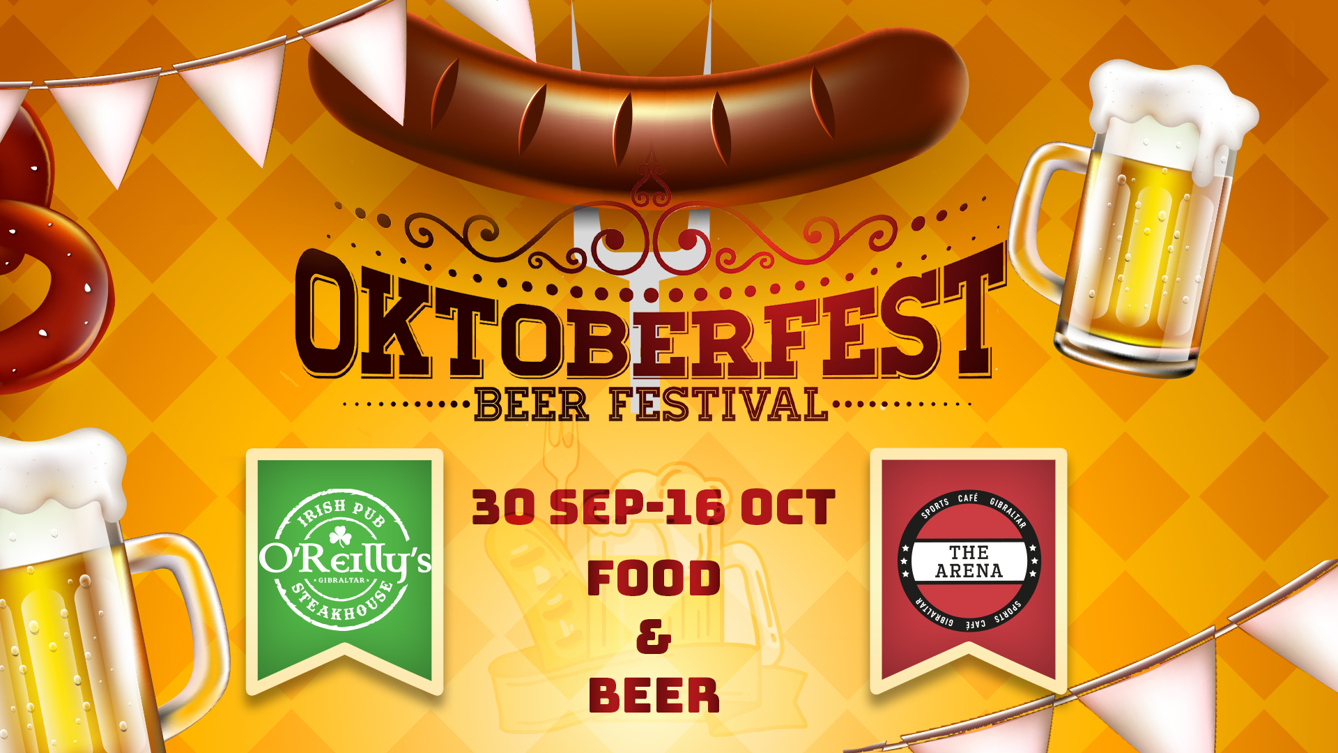 - Oktoberfest at O’Reilly’s and The Arena
